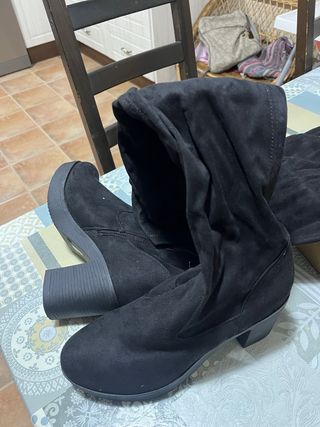 Botas altas de color negro. - Material de ante. - Tacón grueso.