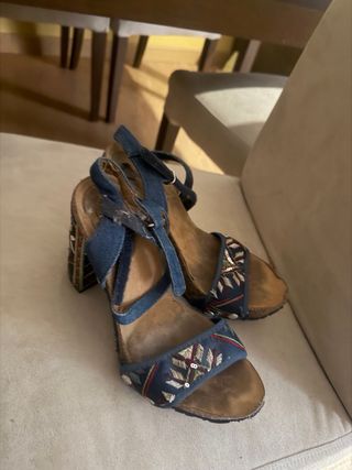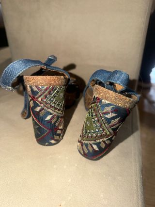 Sandalias de la marca Desigual. - Diseño con bordados y lentejuelas. - Tira de tela vaquera. - Suela de corcho.