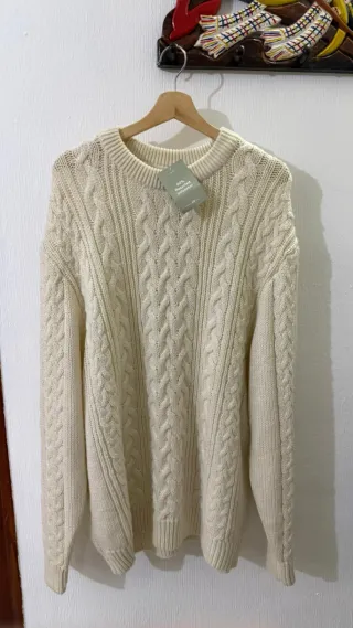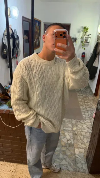 Jersey largo de punto trenzado para hombre. - Diseño de punto trenzado. - Cuello redondo. - Manga larga.