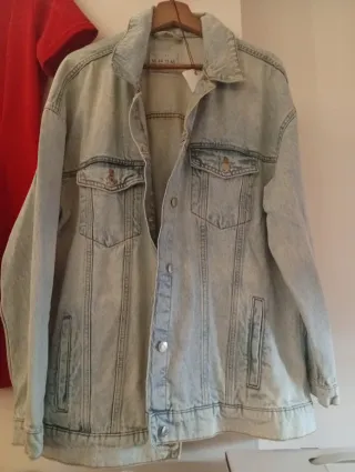 Cazadora vaquera de corte oversize. Un básico atemporal para cualquier armario. - Diseño clásico con bolsillos en el pecho. - Cierre de botones metálicos. - Costuras marcadas.