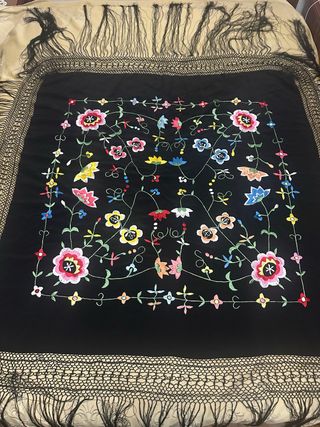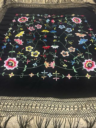 Mantón Manila Negro Flores Bordadas