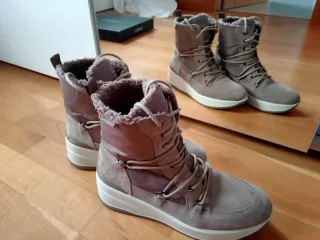 Botas de mujer beige y grises
