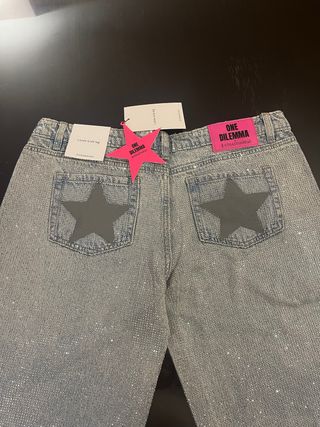 Pantalón vaquero de Stradivarius con diseño One Dilemma. - Estilo Loose wide leg. - Detalle de estrellas en los bolsillos traseros. - Acabado brillante con pedrería.