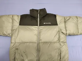 Chaqueta de plumas Columbia en tonos negro y verde. Ideal para mantenerte abrigado. - Nuevo con etiquetas - Diseño acolchado. - Cuello alto. - Cierre de cremallera frontal.