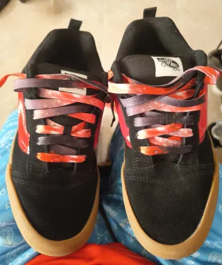 Zapatillas Vans Knu Skool con un diseño modificado llamativo. - Cordones con estampado galáctico. - Detalles en color rojo salmon. - Suela de goma marrón.