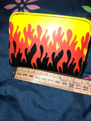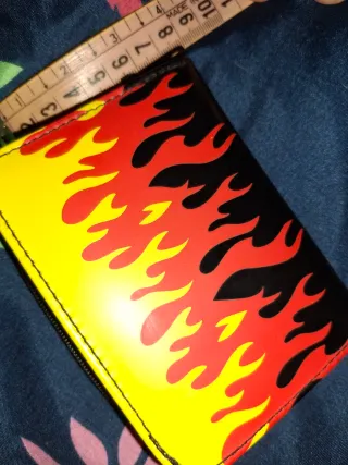 Cartera monedero con un llamativo diseño de llamas. - Diseño de llamas en rojo y amarillo. - Cremallera para cierre.