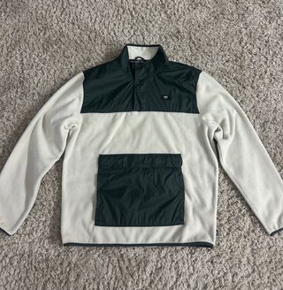 Polar Vans original tipo fleece, combinación crema y verde oscuro. Talla XL (queda genial también como fit oversize). Estado excelente, como nuevo, apenas uso. Tejido suave y grueso, muy calentito. Bolsillo frontal amplio y detalles Vans originales. No cambios. Se envía lavado y bien protegido.