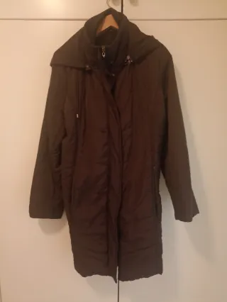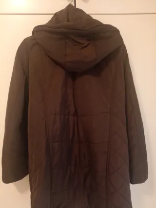 Anorak largo de color marrón con capucha. Pagué 145e, pone talla 48 pero es de tallaje pequeño - Cierre de cremallera. - Bolsillos laterales. - Diseño acolchado.