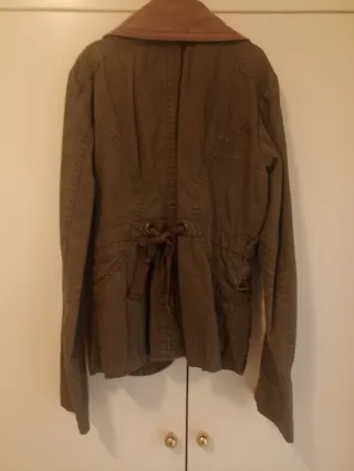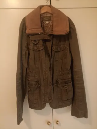 Chaqueta de estilo militar en color verde, perfecta para un look casual. - Diseño con múltiples bolsillos. - Cuello con detalle de pana. - Cierre de cremallera y botones.
