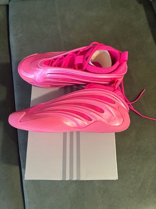 Zapatillas Adidas Harden Volume 9 en color rosa Flamingo. Me costaron 130€, las vendo porque estan nuevas y no las uso Modelo de baloncesto de alto rendimiento, muy cómodas y con amortiguación brutal gracias a la combinación BOOST + Lighstrike