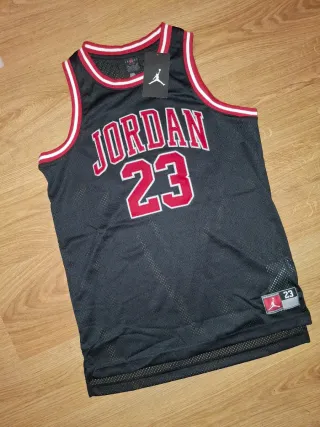 Camiseta de tirantes Jordan con el número 23. - Diseño clásico en negro y rojo. - Tejido de malla transpirable. - Logo de Jordan en la etiqueta.