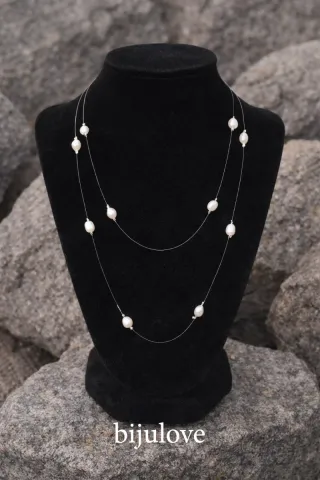 Elegante collar con perlas de nácar. Un accesorio delicado que aporta un toque de distinción. - Perlas de nácar de forma irregular. - Hilo fino plateado.