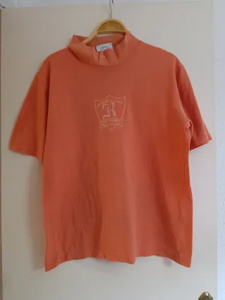 Polo de manga corta con cuello alto y detalle de botones. - Diseño con escudo estampado en el pecho. - Estilo casual y deportivo.
