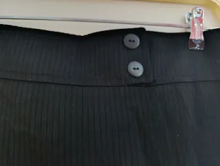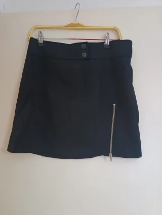 Falda de la marca Cristian Lay en color negro. Presenta un diseño moderno con detalles. - Cierre de cremallera lateral. - Dos botones decorativos en la cintura.