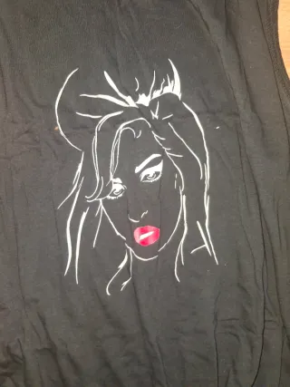 Camiseta negra con un diseño artístico Amy . - Estampado blanco y rojo. - Diseño de rostro Amy Unisex