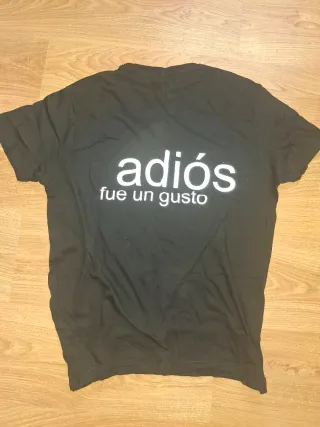 Camiseta negra con un diseño gráfico. - Estampado blanco con la frase adiós fue un gusto.