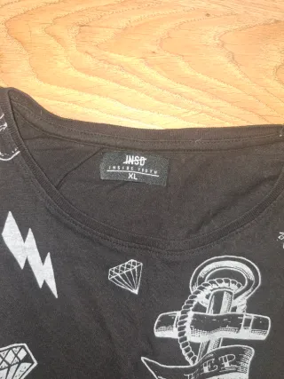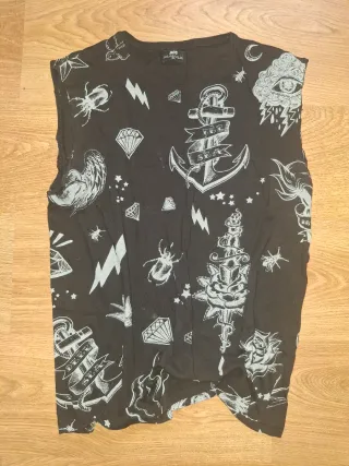 Camiseta sin mangas con un diseño llamativo. - Estampado de anclas, diamantes y rayos. - Cuello redondo.
