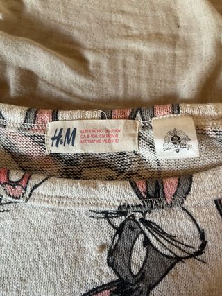 Jersey con estampado integral de Bugs Bunny. - Diseño divertido y colorido. - Tejido suave y cómodo. -Talla 8-10 -tiene una pequeña mancha