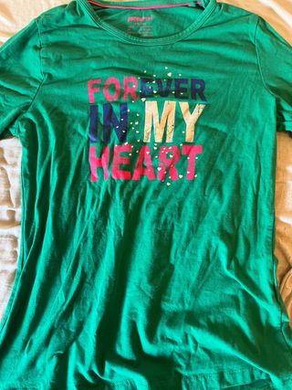 Camiseta de manga larga con un diseño llamativo. - Estampado Forever in my heart con corazones. - Cuello redondo. -Talla 12-14