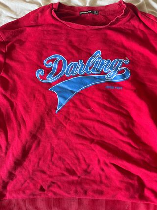 Sudadera roja con estampado Darling y Unique Piece. - Diseño con letras en contraste. - Cuello redondo. - Puños y bajo elásticos.