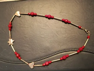Colgante de Agatha Ruiz de la Prada. NO USADO - Cuenta con detalles en forma de corazón y estrella. - Combina cuentas rojas con elementos plateados. - Cierre de mosquetón para mayor seguridad.