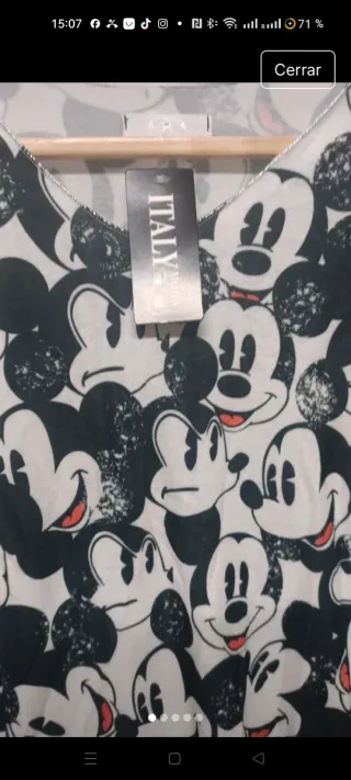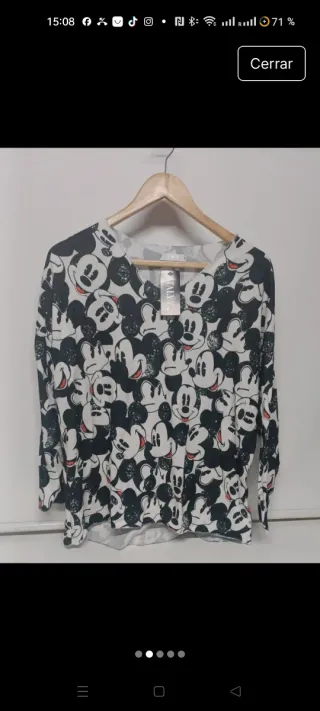 Sudadera con estampado de Mickey Mouse. - Fabricada en Italia. - Diseño multicolor con caras de Mickey. - Manga caída Medidas: Contorno de pecho hasta 120, largo 68, aún conserva su 🏷️🌸🌸🌸