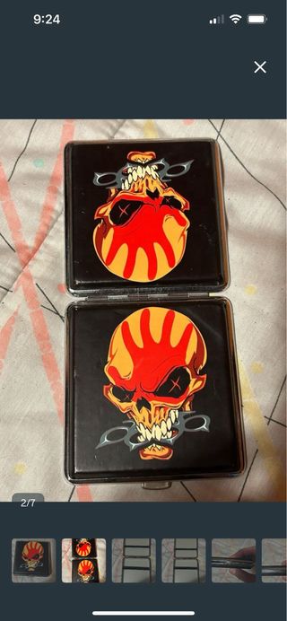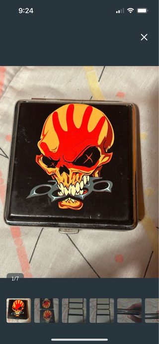 Pitillera con un diseño llamativo de calavera con puño americano. - Diseño frontal de calavera con puño americano. - Acabado en negro con detalles en rojo y naranja.