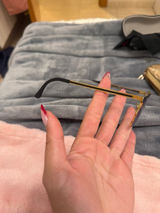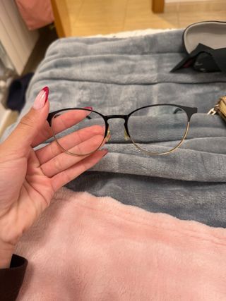 Gafas de la marca Ray-Ban con un diseño moderno. - Montura metálica. - Combinación de colores negro y dorado.