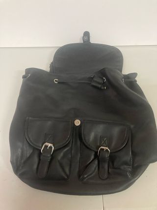 Bolso versátil que se puede usar como mochila. Tiene un diseño moderno con varios compartimentos. - Dos bolsillos frontales con cierre de hebilla. - Solapa superior con cierre de hebilla. - Cierre principal con cordón ajustable.Medidas de la bolsa:40x40cm.