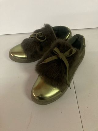 Zapatillas casuales con un diseño llamativo y detalles de pelo. - Puntera dorada - Adorno de pelo en la parte delantera. - Cordones a tono.