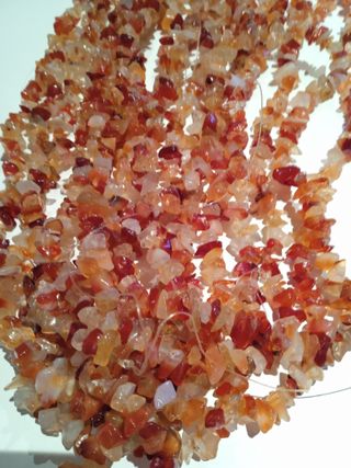 9 tiras carneola de 85 cm Conjunto de tiras de chips de piedras naturales, perfectas para bisutería y manualidades. - Piedras con tonos anaranjados y rojizos. - Formato irregular de chip.