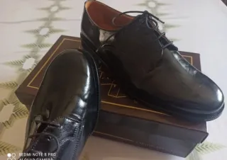 Elegantes zapatos de vestir para caballero ,negros con cordones y suela. Número 43. Sin estrenar. - Diseño clásico. - Acabado brillante.
