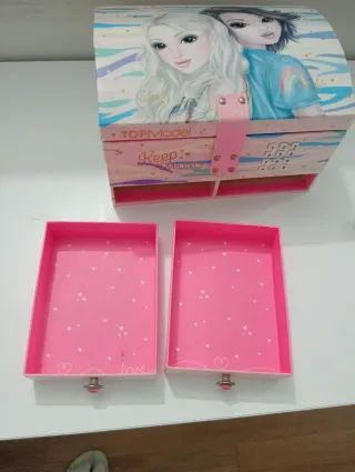 Joyero top model Rosa , con contraseña. - Interior forrado con estampado. - Espejo incorporado en la tapa. - Cierre de seguridad.