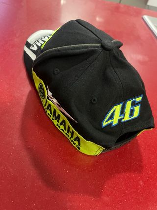 Gorra de béisbol con el número 46 y el logo de Yamaha Factory Racing. - Diseño en color negro con detalles en amarillo. - Logo de Yamaha en la parte frontal. - Número 46 icónico.