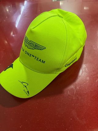 Gorra de Fórmula 1 del equipo Aston Martin. - Diseño llamativo en color verde limón. - Número 14 estampado. - Logo del equipo Aston Martin Formula One™ Team. - Firma de Alonso.