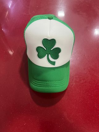 Gorra con un diseño de trébol. - Parte frontal blanca. - Malla trasera verde. - Detalle de trébol bordado.