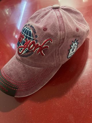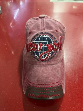Gorra con diseño de New York, inspirada en un estilo vintage. - Bordado frontal con el globo terráqueo y New York. - Detalle de costuras en la visera. - Acabado desgastado que le da un toque retro.