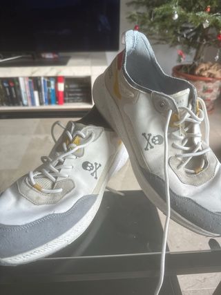 Zapatillas deportivas de la marca Philipp Plein. - Diseño moderno con detalles en amarillo. - Suela de goma translúcida. - originales pague 600