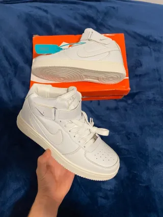 Zapatillas deportivas Air 1 de media caña. - Color blanco - Talla 40 EUR - Unisex - Talla 40 EUR. - Cierre de cordones y velcro. - Detalle de Swoosh en el lateral. airforce, af1, high, altas, botas, zapatos, zapatillas, nike, blancas, blanco, deportivas