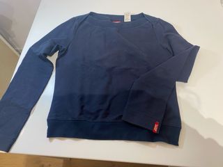 Sudadera de manga larga con cuello barco. - Color azul marino. - Detalle de etiqueta roja en el bajo.