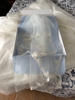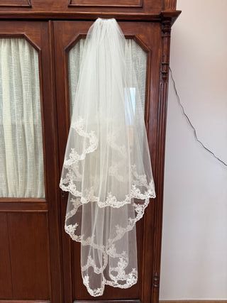 Precioso velo con detalles de encaje y cuentas. Precio original 165 EUR, usado solo una vez.