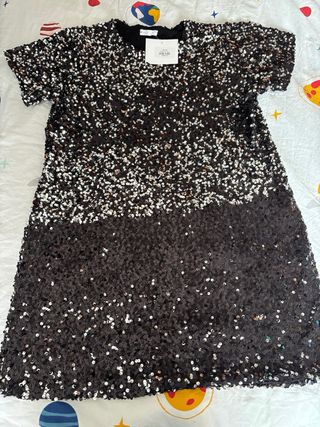 Vestido nuevo con lentejuelas que crean un efecto degradado. - Diseño con lentejuelas plateadas y negras. - Talla única.