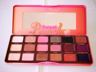 Paleta de sombras de ojos Too Faced Sweet Peach. - Incluye 18 tonos. - Tonos inspirados en melocotón.