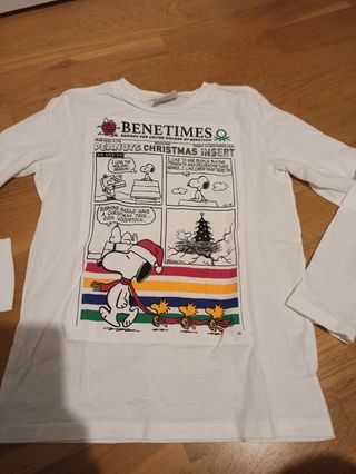 Camiseta de manga larga con estampado de Peanuts y temática navideña. - Diseño de cómic de Peanuts con Snoopy y Woodstock. - Detalle de rayas de colores en la parte inferior. - Cuello redondo.