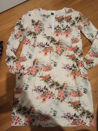 Blusón con un bonito estampado floral sobre fondo blanco. - Mangas largas. - Estampado de flores y ramas.