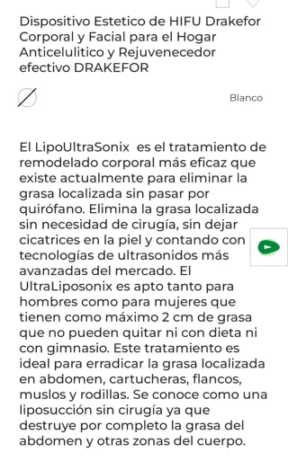 Este aparato utiliza tecnología de LPG (Endermologie) para ofrecer diversos beneficios para la piel y el cuerpo: Anti-edad: Ayuda a tratar arrugas y reafirmar la piel madura mediante la estimulación de las células cutáneas. Acción Adelgazante: Se utiliza para reducir la apariencia de la celulitis y ayudar en el contorno corporal. Masaje: Funciona como un dispositivo de masaje para todo el cuerpo gracias a sus diferentes cabezales intercambiables. Tecnología: Se presenta como un método 100% natural, diseñado para proporcionar resultados visibles de forma no invasiva. Wallapop Wallapop +2