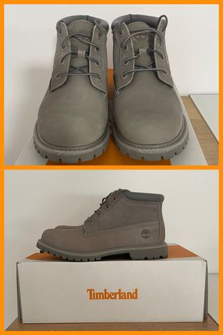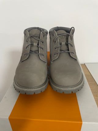 Botas Nellie Chukka de Timberland en color gris, a estrenar. Botas Material: Nobuck color gris Talla mujer: 8.5/39.5 Suela con tacos de goma resistente Construcción con costuras selladas Cierre con cordones Cuello de cuero acolchado Estado: nuevas (ver plantilla y suela) Las vendo por error en la talla