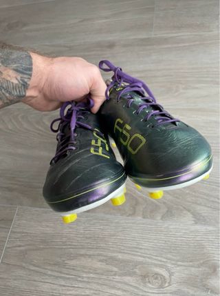 ⚽ Modelo: Adidas F50 Adizero (1ª Generación).Estilo retro 🎨 Color: Chameleon Purple / White / Electricity (Efecto camaleón morado metálico con detalles en blanco y las clásicas 3 bandas blancas). 📏 Talla: 45 1/3 EUR. ✨ Estado: Usadas. Como se aprecia en las fotos, tienen marcas de uso normales, pliegues propios del material y roces en la puntera debido al juego. 📦 Envío: Realizo el envío rápido (24-48h) y el paquete va bien protegido. ❓ Si tienes cualquier duda o quieres más fotos en detalle, ¡escríbeme sin compromiso! #Adidas #F50 #Adizero #Messi #BotasDeFutbol #Mundial2010 #Chameleon #FutbolVintag