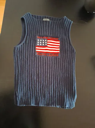 Chaleco de punto de Polo Ralph Lauren con diseño de la bandera de Estados Unidos. Para una mujer que use una S vale ees entallado - Tejido de canalé. - Parche de la bandera bordado en el pecho. - Aberturas laterales en el bajo.