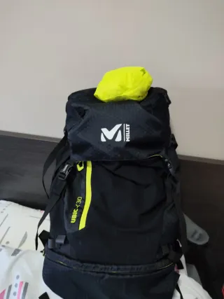 Mochila de senderismo y montaña de la marca Millet, con una capacidad de 30 litros. Ideal para tus aventuras al aire libre. - Color principal negro con detalles en amarillo. - Diseño funcional y resistente.